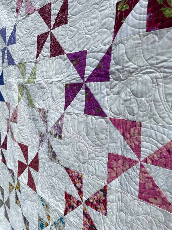 Inspired by classic quilts, this cozy floral garden brings nostalgia and warmth. Machine wash cold, tumble dry lowHand-guided quilting — no computers, only care
