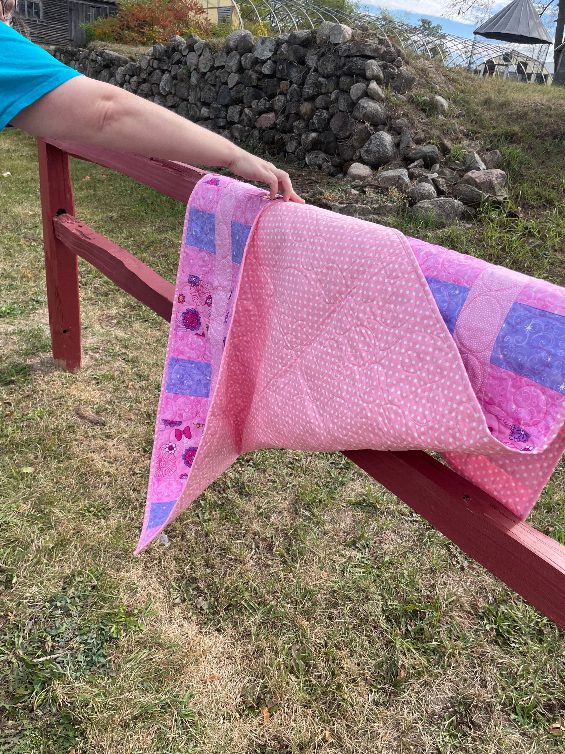 Tthis toddler quilt is a one of a kind hand made quilt created using high-quality cotton fabrics. This smaller sized quilt is perfect for the little ones. Each piece of fabric is carefully selected and sewn together in a unique pattern and then quilted for texture and durability. This quilt will add warmth and color to your home or nursery and it makes a wonderful heirloom or gift for someone special
