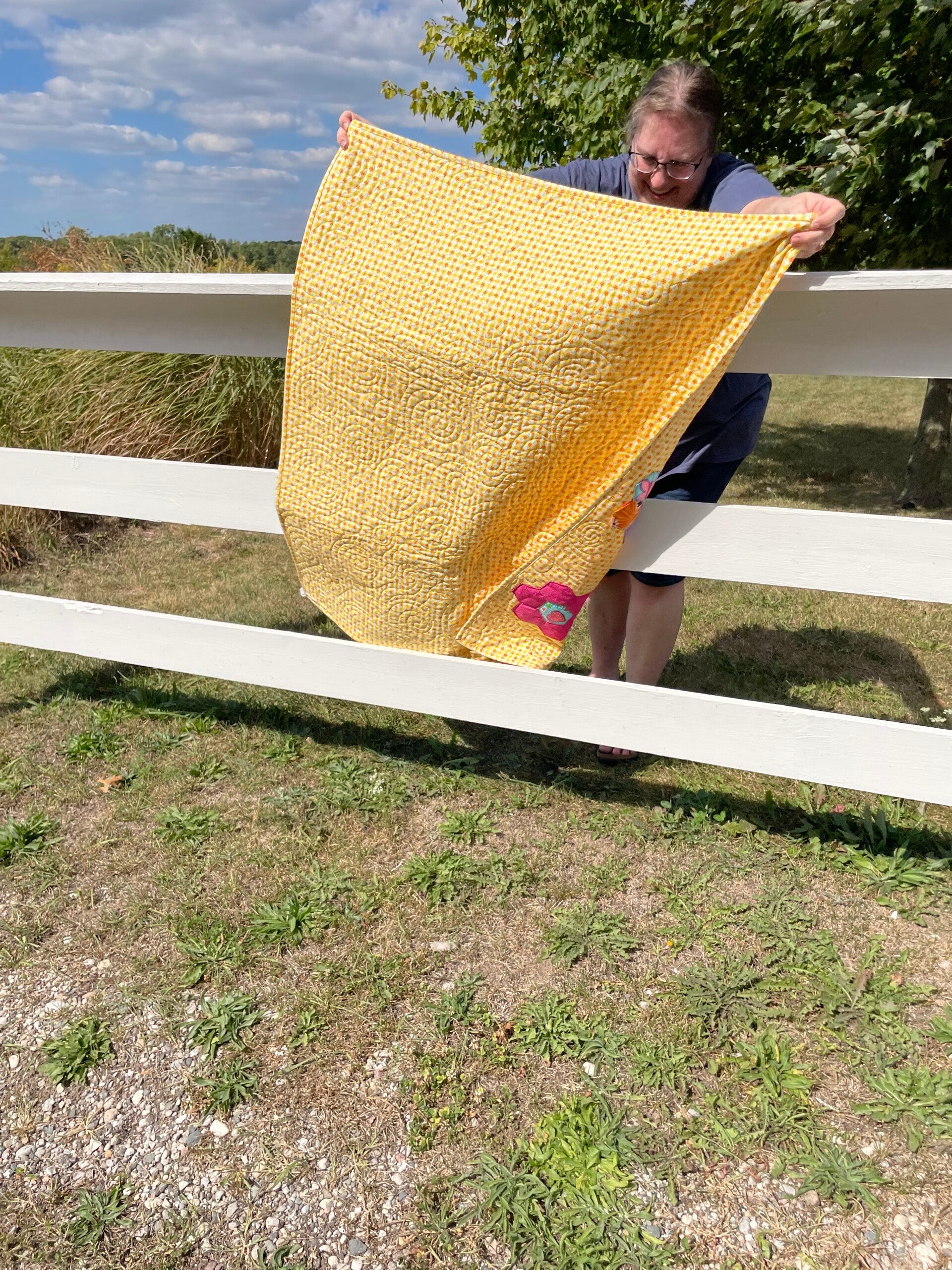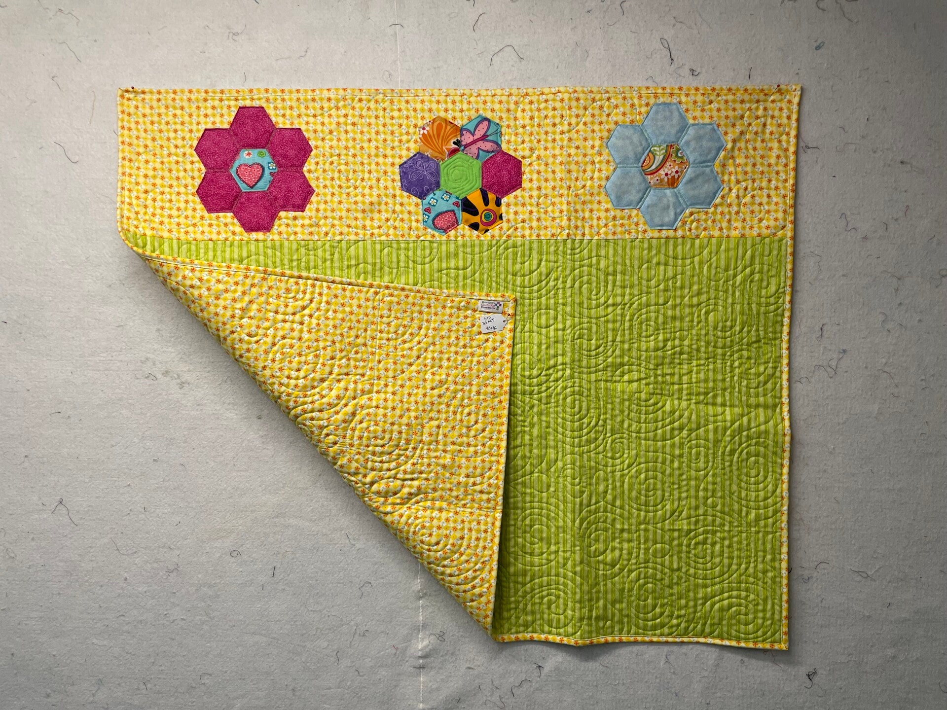 Baby Quilt Whimsical Hexies on Yellow and Green